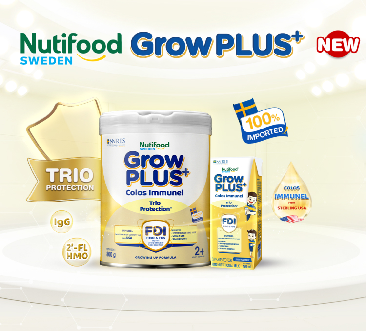 Nutifood Sweden GrowPLUS+ Colos Immunel with advanced formula developed by Nutifood Sweden, in order to meet specific needs and conditions of Vietnamese children.