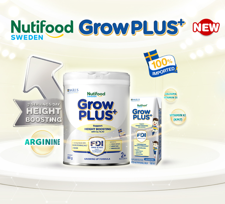 Nutifood Sweden GrowPLUS+ Height Boosting with advanced formula developed by Nutifood Sweden, in order to meet specific needs and conditions of Vietnamese children.